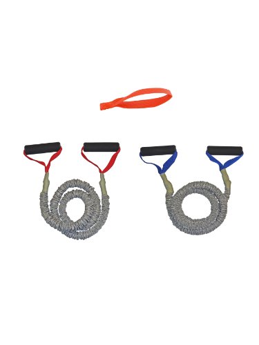 2 FIT CORD Covered Resistance Bands PADDED HANDLES, NYLON SAFETY SLEEVE & PREMIUM LATEX EXERCISE TUBE ** 1 MEDIUM AND 1 HEAVY TONER WITH 1 DOOR ANCHOR **