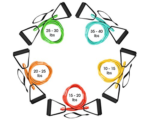 5 Deluxe Duty X-Safe Resistance Bands: 15 lbs 20 lbs 25 lbs 30 lbs 40 lbs (130 lbs total), perfect for Extreme Home Fitness - OTHER BANDS WILL HURT YOU WHILE THIS IS SAFE! - ²RSKZZ