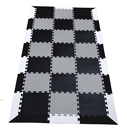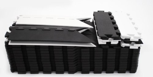 - 11 interlocking waterproof foam mats in black and 10 in gray (covers 21 square feet).