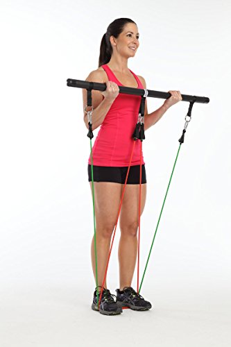 Want to work multiple muscles? This added function bar is the ticket! Connect resistance bands to the outside connection rings and work standard inside, outside and hammer curls. Pull your overhand grip, hammer curl up to your chest - pause and proceed to military presses. Not enough? Stop at the peak of your military, bend your elbows allowing the bar to come down behind your head to perform triceps curls. Think that's it? NOT NEARLY!! Add another resistance band by connecting both carabiners to the added function (middle) strap on this little dynamo to increase and distribute resistance along the length of the bar when performing inside, outside, and hammer curls. Talk about a functional workout! The increased resistance and longitudinal distribution causes you to engage your core to maintain proper posture throughout each repetition. But this bar isn't only for upper body workouts! Connect the appropriate level resistance to the outside connection rings, use your feet to anchor the band(s) and carefully work the bar onto your shoulders with your hands gripping the bar slightly wider than shoulder width. Now you're ready to work those legs! Thats right . . . . squats! These and other exercises make the Multi-Myo Long (40") 3-Strap Bar one of our most versitile bars and a favorite with beginners and advanced exercise enthusiasts alike! Get yours today!! PLEASE NOTE: Anazao Fitness Gear is recommended for use with Bodylastics resistance bands with D.G.S technology. These bands feature anti-snap technology and sturdy metal carabiners making them safer and more durable than standard resistance bands. Not all resistance bands are suitable for use with Anazao Fitness Gear.