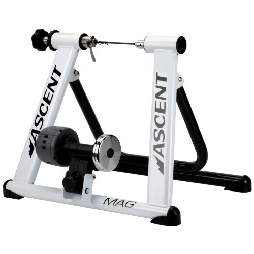 Achieve new heights in fitness with the Ascent Mag 3-L Trainer. The beauty of its magnetic resistance unit is the ability to select the level of resistance you want to utilize - in this case three levels, in the realms of Peaceful Sunday Cruise to Hill Repeat Delirium. The level of resistance is set right on the unit itself and of course you've got the full run of gears on your bike to further fine-tune the exertion level. The amount of noise generated is rather low as well so there'll be no need to crank the volume to high decibels as you enjoy your favorite tunes, DVDs, or TV shows for the duration of your workouts. This magnetic resistance trainer is perfect for indoor training at home when weather or lack of daylight puts a damper on riding outdoors and it's also portable enough to be the ideal means for getting warmed-up and ready to rock at a race. Click for Instruction Manual Magnetic resistance unit provides three levels of resistance Sure-footed, wide steel base with vibration-absorbing feet Rear quick release skewer included to ensure your bike attaches perfectly Aesthetically pleasing black and white colorway