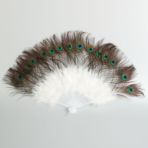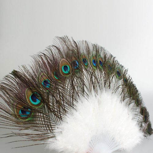 - Beautiful Peacock Feather Belly Dance Hand Fan (White)