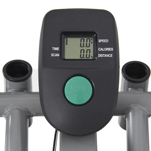 Get in shape now from the comfort of your own home with the latest in fitness technology! This seatless elliptical simulates the way nature intended your body to move, helping improve your balance while allowing for a great total body cardiovascular workout and monitoring of your progress via the large on-board LCD display. This elliptical is lightweight, compact, and wheels away easily for convenient storage. The tension can be adjusted for this resistance via the adjustable tension knob. The arms move with every stride for an extra upper body workout, like a cross trainer, and is also capable of reverse rotation allowing you to activate different muscle groups. FEATURES: Provides a total body, low-impact, cardiovascular workout! (legs, hips, buttocks, arms & shoulders); Allows your body to emulate a running motion without causing the strenuous impact on your joints that occurs on a treadmill; Large, non-slip footplates; Tubular steel frame allows for a secure and stable workout; Wide platform offers stability while exercising; Dual-direction: forward and backward elliptical action; Stride bars for upper body sculpting; 4 function on-board computer (Time, Speed, Distance and Calories); Adjustable resistance; Highest quality construction that will last for years that is comparable with any of the major manufacturers at a fraction of their cost. SPECIFICATIONS: 21"(w) x 35"(l) x 54"(h); Batteries for on-board computer are included; Instruction manual is included