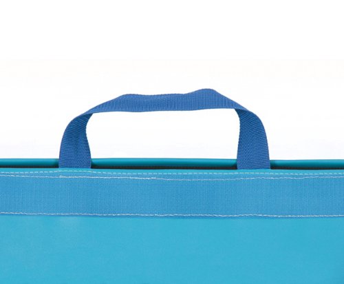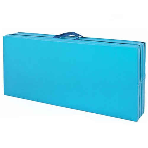 Crosslinks is excited to offer this brand new 4' x 8' x 2" folding mat. Our folding mat is a great addition to your home gym and provides you with a comfortable spot to do floor exercises such as gymnastics, tumbling, wrestling, martial arts, and more! This blue exercise mat is thick and made of durable polyurethane with leather style print. It has a convenient design so that you can fold it and store it when not in use. The workout mat also has sewn in handles making it portable and convenient, so you will no longer have trouble transporting the mat to and from gymnastics or sporting. Our exercise mat is covered with which is non-absorbent and will enable you to clean it easily. With its ease of use and durability this exercise mat is ideal for any home gym or sports facility!