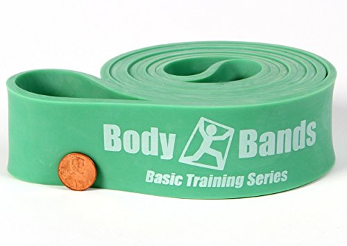 - All Body-Bands 41-inch Loop Resistance Bands are Made by Layering a Continuous Sheet of 100% Natural Rubber Latex which give them Added Strength, Durability, an improved Safety Factor. These are NOT cheaper Molded Bands that typically have fillers that degrade the bands performance and life. We urge you to avoid those and to insist on the Best! Each of our Bands has a 41" Lay Flat Length and has 82" Circular Circumference and is 4.5mm thick. The Resistance Levels Vary based on the Width of the Bands. All Latex Based Resistance Bands Have a Range of Resistance. The resistance level will increase as the bands are stretched. Please note that the Lifetime Warranty is only for Individual Use. Commercial Use in a Gym or Fitness Center comes with a Lifetime Warranty.