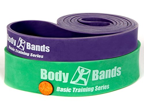 Body Bands Resistance Pull Up Assist Band Set #2 is the best beginner set for Assisted Pull Ups for most adults between 120 to 225 lbs. It includes the 1 1/8" & 1 3/4" Bands. Loop the Band your pull up bar, tie a knot, put one foot inside the loop, and begin doing assisted pull ups. Once you can do 20 Reps with the Green Band, move to the Purple Band and repeat until you can do unassisted Pull Ups. Body Bands are great for: * P90 / CrossFit / or any Cross Training Program * Pilates and Yoga for Strength and Flexibility * Personal Trainers and Fitness Instructors * Business travelers or anyone on the go * Athletes through any fitness level * A Simple, Fast, and Effective Workout All bands are made of 100% natural latex through a continuous layering process to ensure long life. All bands are 41" in length and 3/16" thick. These high quality bands are made from natural rubber latex using a single continuous layering process. Loop Band Resistance Levels: * 1/4" | Light Orange | 5 to 15 Pounds of Resistance * 1/2" | Red | 10 to 35 Pounds of Resistance * 3/4" | Black | 30 to 50 Pounds of Resistance * 1 1/8" | Purple | 40 to 80 Pounds of Resistance * 1 3/4" | Green | 50 to 120 Pounds of Resistance * 2 1/2" | Blue | 60 to 150 Pounds of Resistance * 3 1/4" | Orange | 70 to 180 Pounds of Resistance * 4" | Grey | 80 to 200 Pounds of Resistance Why Body-Bands? Body-Bands offers you great high quality products, a 60-Day Money Back Guaranty, and a LIFETIME warranty for Individual Use. .
