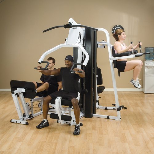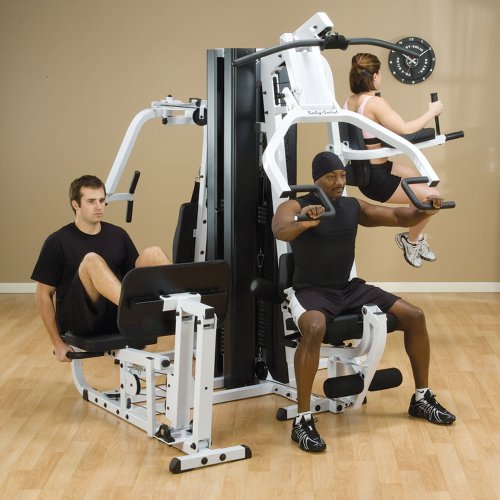 Body Solid EXM3000LPS Home Gym If maximum strength and a weight room full of workout options is what you want in a minimum amount of space, then try the EXM3000LPS on for size. This multi station workhorse provides health club quality strength training for up to three people simultaneously. The EXM3000LPS features a multi function Press Arm Station for bench press, incline press, shoulder press and chest supported mid row exercises. The fully adjustable Perfect Pec Station with range limiters allows users to achieve deeper muscle penetration for faster, more defined results. The Leg Press Calf Press Station operates on a 2 to 1 weight ratio giving the EXM3000LPS the awesome capacity of a 420 Lb. leg press. The nonslip, rubber encased foot plate is constructed of heavy gauge steel for safe operation during the most intense workouts. Always in the forefront of weight equipment design, Body Solid gyms are engineered with meticulous precision and cutting edge ergonomic features. The thick, durable DuraFirm pads are contoured for lumbar support delivering the most comfortable workouts you will ever experience. Every pad, pop pin and pivot point feels natural. Both 210 Lb. weight stacks are within easy reach for a quick, safe weight selection.