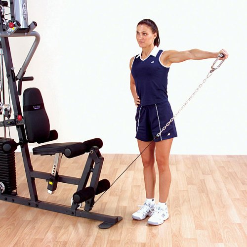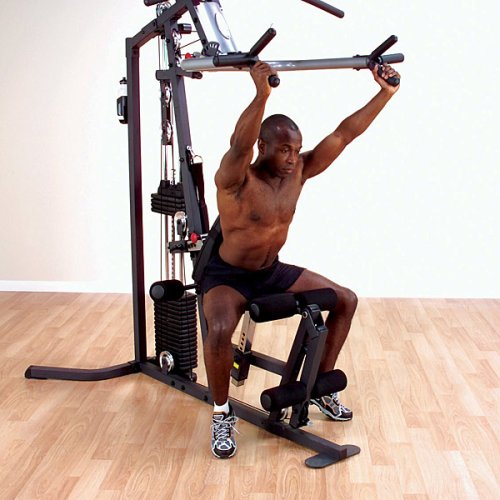 FREE SHIPPINGAdvanced engineering has resulted in exceptional range of motion and full adjustability for any size user. The multi-grip press arm system delivers deep and effective muscle interaction for chest, incline and shoulder press movements. No need to sit on the floor to perform rowing exercises with the Body-Solid G3S Home Gym, simply grasp the mid row handles for an exhilarating mid and lower back workout that will increase flexibility, build strength and relieve lower back stress. Switch between high, mid and low pulley exercises quickly and easily with the Body-Solid G3S Home Gym no cable change design. Perform lat pull downs, triceps press downs, biceps curls, resistance abdominal crunches and dozens more exercises with the included cable attachments.4½ pulleys are impact resistant fiberglass reinforced nylon with precision machined steel ball bearings.Tough, durable, electrostatically applied powder coat finish.Perform over 40 club quality exercises including: shoulder press, chest press, oblique crunch, leg abduction, concentration curl, chest supported mid row, front deltoid raise, high pulley reverse crossover, seated row, leg extension/leg curl, and many more. INCLUDES:2 Stirrup HandlesLat BarRevolving Straight BarAnkle StrapAb/Triceps StrapTotal Body Workout DVDFull Size Exercise ChartWater Bottle/Towel Holder WARRANTY:LIFETIME