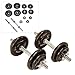 - 40 pound set includes two handles, four 2.5-pound plates, four 5-pound plates, 4 collars, and a plastic storage case