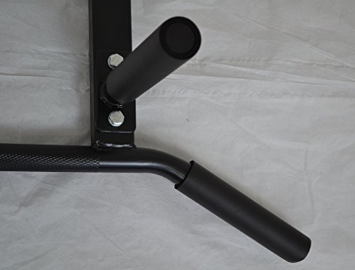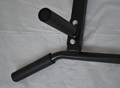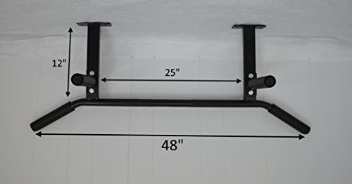 This chin up bar is great to work your back, shoulders, arms, and biceps. Professional Gym quality bar with superior design compared to other bars. For instance, the chin bar is welded onto the main supports. Other companies attach using one bolt, a weak link. Also, our front handles are a comfortable 25" apart. Other companies space their handles 32" apart, which is too wide. Our bar also can be mounted very securely to bottom of any joist regardless of spacing. Other bars have to line up perfectly or will not fit. Handles are lightly knurled for a better grip. Side handles bend down for a more ergonomic angle, reducing stress on your wrists. Has the feel of a lat pull-down machine. Extra front grips allow for a variety of workouts .Ceiling mounted design. Perfect to do P90x exercises, attach rings bands, etc... NEW and IMPROVED; the 2 outside grips and 2 front grips now have comfortable cushion. The middle bar has heavy knurling, gloves recommended. Center of middle bar is smooth to attach bands. Please note the bar weighs about 17 lbs., weight listed below is only for realistic shipping calculation. Get one and take your workouts to the next level.