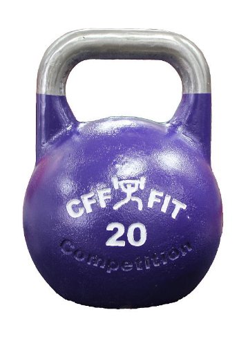 CFF 20 kg Pro Competition Russian Kettlebell (Girya) - Great for Crossfit and MMA Training.Why Competition Kettlebells? Unlike classic cast iron kettlebells, pro grade kettlebells always have the same dimensions regardless of size. This means that whether you are using an 8 KG bell or a 32 KG bell, it will always rest on your forearm in the exact same place. This ensures that your technique stays consistent regardless of weight. Traditional cast iron kettlebells get larger as they get heavier and each size rests in a slightly different place in the rack position. Benefits of working out with Kettlebells: • Helps develop total body strength, power and endurance. • Kettlebells work the body across a wide range of angles. • Increases your dynamic flexibility. • Off-centered weight of kettlebells increases the demand placed on core stabilization, agility and proprioception • Use for squats, throws, cleans, jerks, snatches, rotational swings and more! • Color coded for easy distinction between sizes