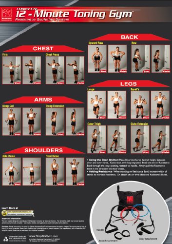 Go anywhere! Train anytime! 7 Levels of resistance! The Complete 12-Minute Toning Gym includes: 3 Resistance Bands (Light, Medium, Heavy), 2 Padded Handles, 2 Ankle Straps, Door Anchor, Carry Bag, Easy Start Workout Poster