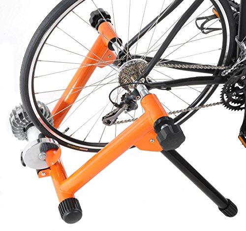 The Conquer Fluid trainer is the perfect indoor cylcing workout machine. The progressive fluid resistance unit, provides a smooth quite ride. You can adjust the resistance by changing gears, just like you would riding on the road.Features:Advanced fluid resistance with power curveProgressive resistance system is smooth, quiet, and realisticExtra wide frame for stability - folds for easy storageCompatible with 26 in., 27 in. and 700c bikesFront Wheel Riser Block Included!