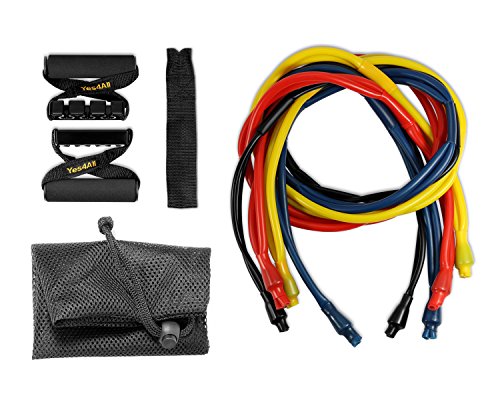 - Four X-Safe - 45 lbs Resistance band with 2 handles, 1 bag, 1 door anchor included. Band is 48" long plus handles