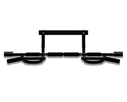 Strenghthen your backs, biceps, arms, shoulders and other upper body muscles in the comfort of your own room with Yes4All workout bar. Combo Chin Up Bar & 7 X-Safe Resistance Band set Preminum High-quality BAR We offer the THICKESt heavy-duty steel (1.6 mm thick), LONGEST (42" long), and HEAVIEST BAR on the market. While other bars only support 250lbs, our heavy duty, well-constructed Chin up bar supports up to 300lbs for your safety. Multi functional exercise tool & Resistance Band set Once you have done with chin-ups and pull-ups, you can move Yes4All Workout Bar to the floor, adhere to your door way, and it also works great for doing push ups and chin ups. Multiple handgrips for you to vary your workout (close grip- and wide grip), targeting to different muscles groups like arms, chest, core or inner and outer back effectively. And the PVC and rubber foam padding handgrips provide a secure, comfortable grip and thus prevent sliding or interruption during your whole workout. Designed to fit convieniently most doorway frames from 28"-36". For doorway from 28" - 31", you may need a simple 30 seconds cushioning work. 1.0" to 3.5" sturdy door-trim is required. Wall thickness (incl. trim) must be from 5" - 6"; your walk-way must be able to handle 42" long bar (see illustrated picture for complete detail) Packed with this bar is a 95-lb X-Safe Resistance Band set that helps to replace the dumbbells. You can have any combination from 0 - 45 lbs / side per band set XSP for strength-conditioning, coordination & balance, energy maximization. Buy it now and enjoy the pieace of mind!!! This chin up bar comes with 60 day Satisfaction Guarantee and 1 Year Warranty!