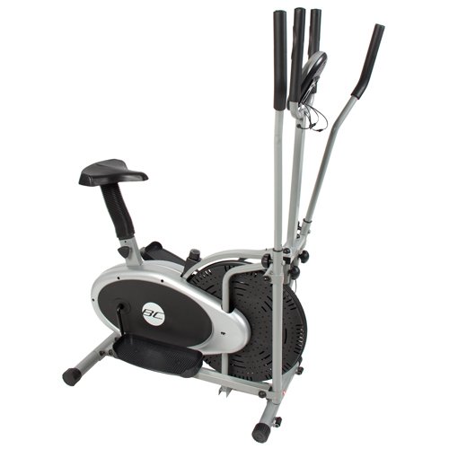 This elliptical provides a unique and innovative design that allows for the motions of an elliptical cross trainer or a bike, providing you a machine with two functionalities. You can also monitor via the on-board LCD display (time, distance, speed, and calories) while you are doing your great upper and lower body cardiovascular workout. The adjustable tension knob is provided to fit you need to work out at any level. The arms move with handlebars allow you to activate the muscle groups of your upper body. This elliptical is lightweight, compact, and wheels away easily for convenient storage. We purchase all of our products directly from the manufacturer, so you know you're getting the best prices possible. NEW PRODUCT WITH FACTORY PACKAGING FEATURES: 2 In 1 : an elliptical cross trainer & a bike Provides a total body and cardiovascular workout! (legs, hips, buttocks, arms & shoulders) Large, non-slip pedals Study steel construction allows for a secure and stable workout and will last for years Adjustable tension knob for your work out at any level Wide platform provides maximum stability while exercising Dual-directions: forward and backward elliptical action Chain-driven fan wheel runs quietly and smoothly Digital monitor functions: Time, Speed, Distance and Calories, heart rate