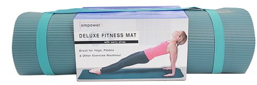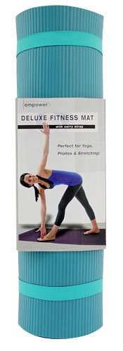 The Empower Deluxe Fitness mat is a full 12mm thick. Great for all workouts including stretching, toning, strength training and Pilates. It is soft to the touch, lightweight and impervious to water. The Empower Deluxe Fitness Mat provides superb cushioning and a stable foundation for any type of workout. The ribbed design and rounded corners makes sure it stays in place during use. This mat includes a convenient carry strap for use at home or on the go. About Empower: Empower designs and develops fitness equipment and workouts that motivate and inspire women to be active, healthy and strong.