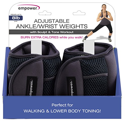 The Empower Adjustable Ankle Weights are made of soft, stretchy neoprene fabric that is breathable and comfortable to wear. Simple Velcro closures provide a secure, snug fit for most wrist/ankle sizes and the unique pocket design allows for quick and easy weight adjustments. This weight set is intended for use on wrists for walking or on the ankles for a variety of lower body exercises and comes equipped with an easy-to-follow, step-by-step illustrated workout poster.