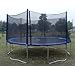 Exacme trampolines are made with strong, rust-resistant galvanized steel tubing, which is safer and longer-lasting than conventional welded trampolines. 6 U-shaped legs with 12 balanced contact points add stability and prevent wobbling or tipping, also add more weight capability. Galvanized Springs provide a deeper, more exciting bounce. This 15-foot, 108-spring trampoline has a 375-pound maximum weight capacity, is easy to assemble and requires no tools or extra drilling, and meet all ASTM, TUV, and GS quality and safety requirements. A zipper enclosure allows easy in-and-out, the rust-resistant frame will hold up to years of heavy outdoor use. Details: Trampoline: Rust Resistant Galvanized Steel Heavy Duty Frame; 6 of U-Shape legs; PP Jumping material ; Jumping material Diameter:159 inch; Hot deep galvanized Frame steel ; 6 pieces of U-shape steel tube (hot deep galvanized) ; 12 pieces of Leg extension tube (hot deep galvanized) ; 108 pieces of 7" Galvanized Springs ; PE+PVC pad cover in blue color. Net Enclosure: Creates a Fun Jumping Environment without limiting Visibility; PE mesh netting; Rust-resistant galvanized steel frame padded with protecting foam for the poles ; All materials are made with durable UV protected material for increased weather resistance; Sturdy straps and ropes to secure net to trampoline ; Trampoline height 3.1ft, height with net 9ft; Maximum Weight Capacity: 375 lbs. Package weight 180 lbs with 3 boxes. Including:15ft trampoline, net enclosure, Poles , ladder, Clamps, Pole pads, tools and hardware .