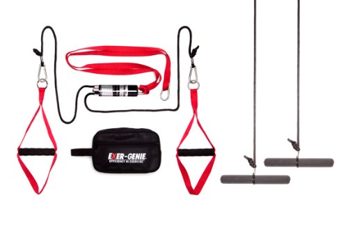 New Model EXERGENIE CLASSIC Training System, Made in USA, Used by NASA, Professional Athletes, Exerciser for anyone age 5 to 105. Safe strength, flexibility and muscle building. Comes complete with everything you need to do 1000's of exercises. Great for functional fitness and rehab or for sport performance. If you need speed, strength, flexibility you need an Exer-Genie. Golf Specific Exercises to help you improve your performance. This Current Sale includes as a Bonus the Padded Stirup Handles used for Resistive Suspension Training, Swimming Strength and Endurance Training.