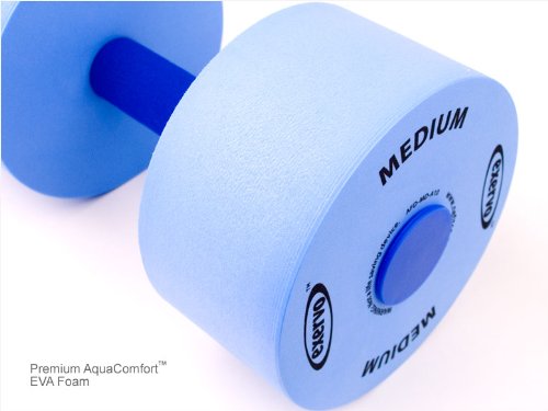 We designed our ExervoTM aqua fitness pool dumbbells with a tight focus on overall component quality. Our high density, AquaComfortTM EVA foam is the ideal material for indoor or outdoor pool and open water exercise. EVA foam is UV resistant and is very pliable so it does not chip or become brittle. This foam is very dense so water beads up and the smooth finish makes them easy to clean. The AquaComfortTM foam is resistant to harboring bacteria like the typical open cell white foam. ExervoTM pool dumbbells are designed for comfort and performance. The line includes 4 resistance levels. This Combo Set includes the light resistance dumbbells with 2" thick by 6" round foam on each end and the medium resistance dumbbells with 3" thick by 6" round foam each end. This product is not returnable once it has been used in the water. The resistance of any foam dumbbell moving through water will change slightly or even dramatically depending on the shape of the dumbbell and it's orientation, path and speed. Another factor is whether the dumbbell is moving towards or away from the surface since the natural buoyancy of the foam will reduce the resistance if it is moving towards the surface of the water.