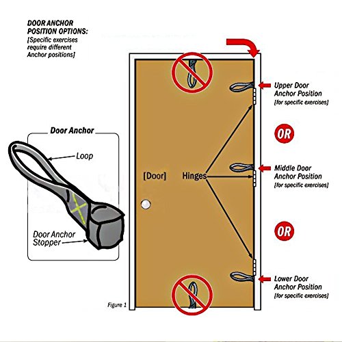 The best bodybuilding is not at a gym. It can be performed at home, or anyplace. This FREETOO heavy duty door anchor attachment helps you to make a anchor at any closed door for your resistance band workouts, no matter at home, or while traveling. Features: Perfect in workmanship. Made up from solid teflon material core, super strong nylon webbing, reinforced TPR buffer ring Protect your door from being damaged. The solid core is covered with soft TPR buffer ring, so just put it betweeb the hinges from one side of the door, it does not do anything strange to the door. Sturdy, do not worry about it slipping. With solid teflon material core, you will have no fear of it pulling through Easy to use. It attaches to the door super easily and puts the necessary pressure for you to perform band versions of pull-ups Multifunctional. You can use this anchor to connect your resistance band and door frame. In general it is suitable to all kinds of resistance band. It allows you to keep doing exercise at home, or in your office, or in hotel How to use it? Step 1. Open the door. Be sure to utilize a sturdy door and one that closes towards you as you are doing the exercises, (this insure that the door is actually being pulled close as you stretch the bands) Step 2. Go behind the door and thread the loop of the anchor through the opening on the hinge side Step 3. Open the loop of the door anchor Step 4. Thread your elastic(s) through the loop of the door anchor