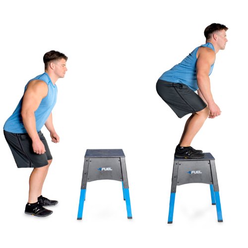 The Fuel Pureformance Adjustable Plyometrics Box is a must-have training tool for explosive jumps and speed training. Plyometrics training is great for improving explosiveness, speed and vertical jump. Athletes of all levels use these boxes for forward, lateral, and other plyometric jumping drills. Increase not only in your vertical jumping ability, but also drastically increase foot speed, cardiovascular endurance, overall leg strength and health. The number of exercises you can perform are endless and only limited by your creativity. Ahtletes of all levels can improve performance and increase speed agility and all around fitness levels with plyometric training. This plyo box is adjustable to three heights: 14", 18" and 22". The non slip landing surface is 16" x 16". Designed with quick spring button adjustment for easy and fast adjustments. Constructed with non marking rubber feet, powder coat finish and convenient space saving design.