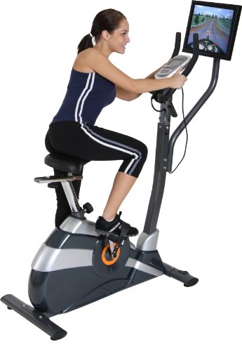 - Interactive exercise bike with 4 preloaded video games for fun, healthy racing