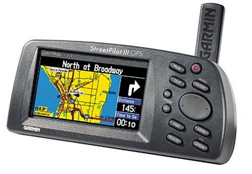 The portable Garmin StreetPilot III Automotive GPS brings you in-car satellite navigation, and is the perfect companion for business or vacation travel. The colorful electronic map displays your location along with cities, streets, coastlines and more. Download maps from MapSource City Navigator CD-ROMs for more details, address lookup and "Find" features. Or, select a destination, and the StreetPilot III will calculate a route and display street names and turns while voice prompts tell you when to turn. Imported.