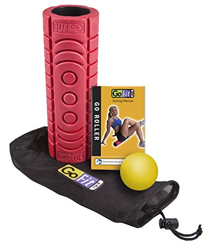 GoFit GoRoller Massage Roller with Myofascial Release Ball, Mesh Carry Bag and Exercise Manual, Red