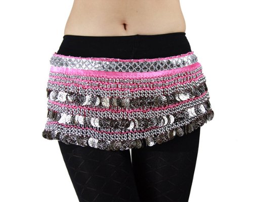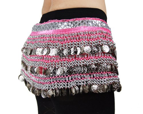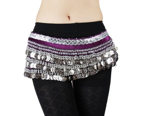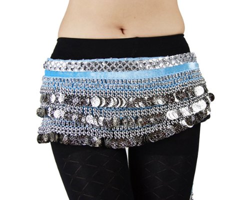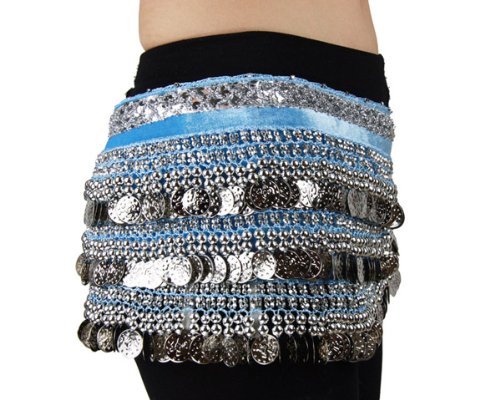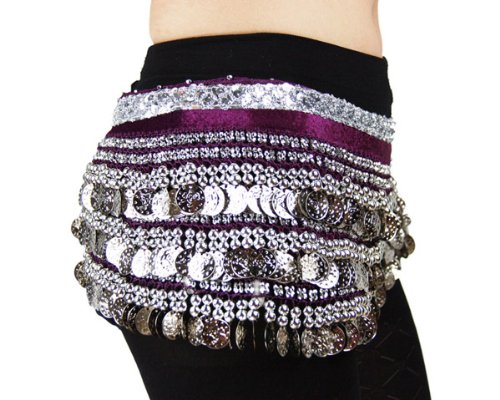 Brand: H:oter.Model: HSF-1005, H:oter Multi-Row Silver Coins Belly Dance Wrap & Hip Scarf, Simple Classical Style.Fabric: velour.Coins: 338 silver coins.Dimension: Wrap measures 63 inch (160cm) in length, which fits slim to 31.5 inch (80cm) waists.Recommended features:1. All beads and coins are hand sewn, not mass produced!2. This scarf creates loud and lovely sound when the dancers move and shakes hip.3. Perfect for practice or just as a fashion accessory!4. Want something a little nicer and special? Try our wavy-bottom hip scarves!