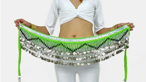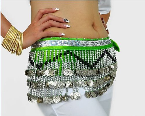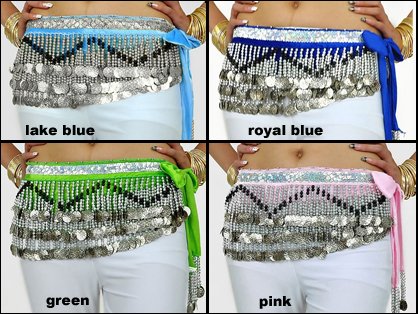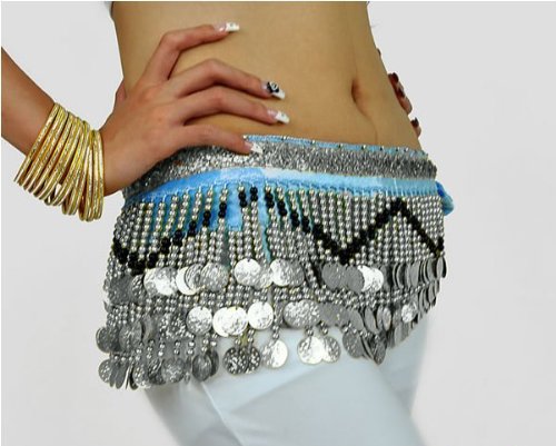 Brand: H:oter.Model: HSF-1007, H:oter Three-Row Silver Coins Belly Dance Wrap & Hip Scarf, Classical Pyramids Style.Fabric: velour.Coins: 258 silver coins.Dimension: Wrap measures 63 inch (160cm) in length, which fits slim to 31.5 inch (80cm) waists.Recommended features:1. All beads and coins are hand sewn, not mass produced!2. This scarf creates loud and lovely sound when the dancers move and shakes hip.3. Perfect for practice or just as a fashion accessory!4. Want something a little nicer and special? Try our wavy-bottom hip scarves!