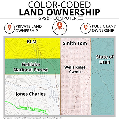 - Land Ownership: Color-coded public and private lands, Land owner names with property boundaries