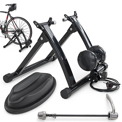 Features 7 levels Of Resistance To Simulate Any Road Condition - Magnetic Resistance Hub Offers Smooth And Consistent Resistance - Handle Bar Mounted Resistance Controller Easily Lets You Adjust Resistance On The Fly - The Bicycle's Current Gear Set Can Be Used In Combination With The Magnetic Resistance Hub For A Wider Band Of Resistance Levels - Conveniently Folds Away For Easy Storage - Easy To Use, Sets Up In Seconds - Wide Foot Base Design Ensures Stability Even During The Hardest Training Sessions - Precision Rear Wheel Skewer For Firm And Secure Hold In The Trainer - Simply Install The Provided Skewer, Position The Bicycle In Place And Lock In The Bike With Axle Locking Lever - Package Contents: 1x "A" Frame Bicycle Trainer With Precision Balanced Magnetic Resistance Hub - 1x Handle Bar Mounted Resistance Level Controller - 1x Rear Wheel Bicycle Trainer Skewer - 1x Front Wheel Riser Block - 1x Instruction Manual
