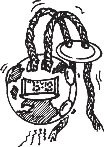 Uber-cute little stopwatch in a 1-7/8" blue globe, like a small planet earth. The digital watch/stopwatch display is in a 7/8" wide x 3/8" LCD. Hangs on a 19" non-breakaway neck cord with a matching blue cinch and runs on a replaceable button-cell battery.