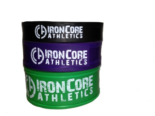 Iron Core Athletics #3, #4, and #5 set of Resistance Bands is the ideal combination for your entire range of body weight exercises. Assisted body weight exercises are the best way to gradually strengthen the core muscles in the body without risking injury that can be introduced by using too heavy of weights and overexerting specific muscle groups before they are properly strengthened. For Pull Up Assistance : This set will satisfy the needs of most people of varying conditioning levels in the 100 to 250 lb weight range. Use a single band or group multiple bands together to provide adequate assistance. For Resistance Exercises : These bands are ideas for building core strength through varying resistance levels. Great for Crossfit, Pilates, P90X as well as all other resistance exercise requirements. Choosing the right bands : Every person is different and the amount of Assistance/Resistance varies according to weight and fitness level. Listed below is a chart of the Assistance / Resistance offered by each individual band. Each band has an identical length of 41" and can be stretched to a length of over two times it original length making these bands suitable for individuals from 5 feet to 7 feet tall. Multiple bands can be used together to provide a wide range of assistance levels. 3/4" Black Band (#3) -- 30 - 50 lbs 1 1/8" Purple Band (#4) -- 40 - 80 lbs 1 3/4" Green Band (#5) -- 50 - 120 lbs Why Iron Core Athletics Iron Core Athletics is a leader in providing equipment targeted at building Core strength with high quality products at a fair price. We offer an industry leading 90 Day No Questions Asked return policy and warranty all of our products against defects for an entire year.