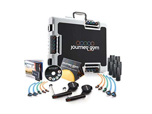 journey gym Features: 30 resistance bands (five on each side plus ten additional bands) for a customizable resistance system of 5 to 75 pounds per side, adjustable handles, and legs to adjust the height of the gym and convert it to a stair stepper. Bring the gym with you each time you hit the road with the portable Journey Gym. The world's first truly portable universal gym, the Journey Gym literally goes everywhere you do. The journey gym BASE package has everything you need to start your health journey right. In addition to the patented journey gym portable universal gym, the BASE home gym package comes with the basic building blocks leading to better health, allowing you to get fit, track your progress, learn to eat sensibly and communicate your success to others. Never worked out before? No worries! The BASE package features our Gradually Ramping Interval Training Programs, a series of high-intensity, interval training workouts with a twist: We begin at the level that is right for you and increase the intensity from there. We've designed G.R.I.T. to fit your life and your life style. Want to meet other Journey Gym users? Visit the free online community www.journeygym.com, where you can create exercise videos, track your activity and nutrition, and share your progress with friends and family.