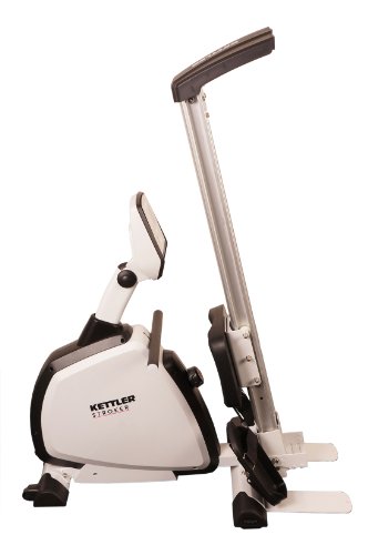 The Kettler Stroker Rower and Multi-Trainer is versatile and especially space-saving. Ideal for improving strength and endurance, the center pull technology allows for ambitious cardio training with simultaneous upper-body and leg muscle strengthening. The roller seat with high quality ball bearing moves quietly and precisely along the guide rail. Vivid LCD displays 6 functions simultaneously - time, oar strokes, current cadence, cumulative distance over a training session, heart rate and kilojoules. Includes a Polar T34 chest strap heart rate monitor which senses heart rate and wirelessly transmits the data to the computer. Computer includes a recovery feature which provides a cardio wellness grading indexed 1 to 6 to track improvement. Magnetic Brake System resistance can be manually adjusted with indexed settings from 1 to 8 providing a wide and challenging range. Biomechanically correct footplates provide a full longitudinal rowing motion. Thick padding on the seat provides maximum comfort. Sturdy, powder coated, steel frame folds-up when not in use. Transport castors are built-in to make moving simple. Included Steel Platform accessories attach to provide 10 additional exercises. Unit operates using 2 AA batteries (included). No AC power source is required.