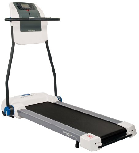 TR 200 Features: -Treadmills.-Three speed programs and three Incline programs.-Contemporary, convenient and ''just my size''.-For light users looking for a simple, portable walking treadmill.-Surprisingly sturdy, yet small enough to use in any workout space.-Quickly and easily folds to 11'' thin so you can store it under a bed, in a closet or behind a door.-Intuitive console features a large, easy to use display with six exercise programs, motivating readouts and quick speed and incline buttons.-Display area: Blue LCD with simultaneous readouts and exercise program profile showing workout progress.-Readouts: Time, calories, distance, steps, heart rate, speed, incline level.-Audio center: Speakers and headphone plug-in.-Easy to use: Start, up / down arrow keys, and quick start speed and incline buttons.-Go directly to 3, 4, 5 or 6 mph and to incline level 4, 6, 8 or 10 by pressing the desired speed and incline level button on each side of the console display.-Speed: 0.5 - 6 MPH.-Weight capacity: 250 lbs. Specifications: -Drive motor: 1.5 HP continuous duty.-Incline: 10 Levels. Dimensions: -Belt size: 17'' W x 48'' D.-Folded dimensions: 11'' Thin (vertically or horizontally).-Overall dimensions: 52'' H x 31'' W x 60'' D.