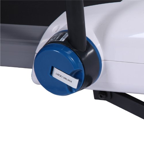 - Blue LCD console tracks your time, calories, distance, steps, speed, and incline