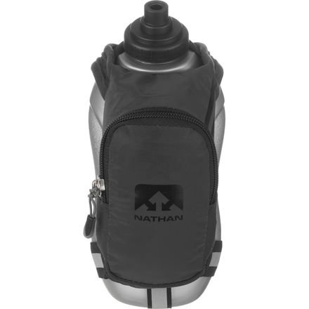 This is easier to see because of the lightweight, black reflective fabric. The 18 oz. Speed Draw Flask combined with the grip free strap and lightweight zippered pocket keep your essentials safe and secure.
