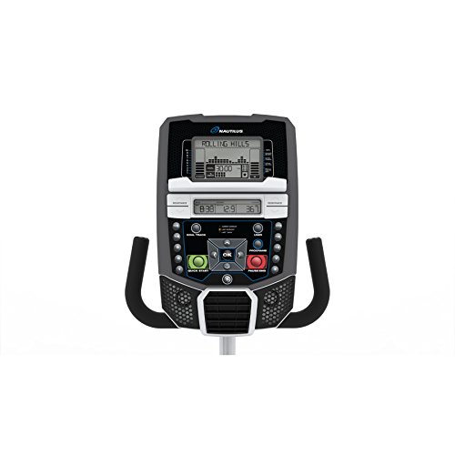 The Nautilus R614 recumbent bike features the Dual Track multi LCD display console with goal tracking functionality enabling the user to set and track exercise goals of workout time, distance traveled and calories burned.