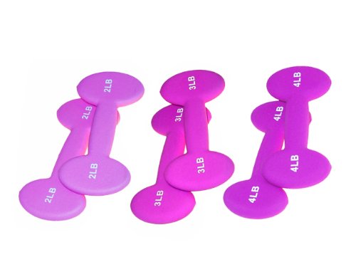 - 2, 3 and 4 pound slim design dumbbells allow you to hold 2 in your hand at a time for more combinations