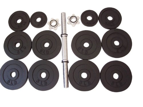 - 52.5Lbs Set Including One Textured Solid Chrome Handle, Two Collars(5lbs), Eight 5 Lbs Plates, Two 2.5Lbs PLates, Two 1.25Lbs Plates