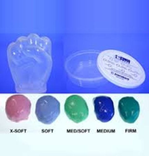 POWER PUTTY is a high quality silicone rubber with the unique ability to resist in proportion to the pressure applied against it. For example, under hard impact it bounces like a rubber ball and under slow force it stretches like elastic. Therefore, it can be squeezed, stretched, pinched, and pulled to provide exercises for strengthening the muscles of the fingers, hand, wrist, and forearm. Power Putty is made in five levels of resistance that are color coded for individual strengthening needs. It is used by medical professionals for hand rehabilitation after surgeries, fractures, sprains, stroke recovery, and arthritis. It is also sold in sports, fitness, and massage supply stores to increase hand strength and improve performance. Power Putty is used to improve dexterity and motor coordination for occupational requirements of dental hygienists, massage therapists, and musicians. Power Putty can be enjoyed by anyone, young or old, to strengthen the hands, improve dexterity and precision, and increase flexibility. The hands are miraculous human instruments we use to grip, twist, push, and pull. Power Putty will greatly enhance these capabilities and you'll have fun doing it. Strengthens all muscles of the hand Exercises individual fingers and thumb Works fingers in a full range of motion from closure to extension Develops strength and dexterity