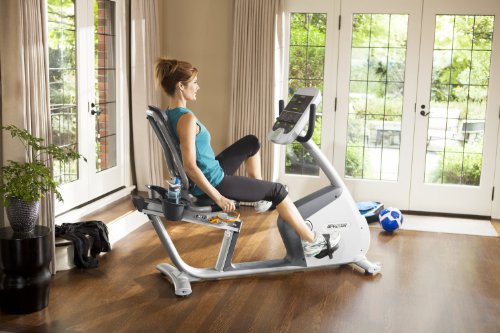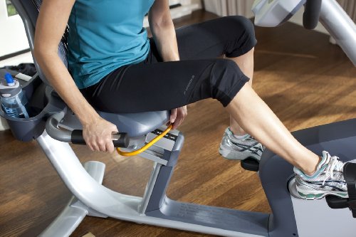 Precor has been building equipment to withstand the repetitive, rigorous workouts of health clubs, hotels and spas for years, so they earn their reputation on quality and durability. The Precor RBK 815 Commercial Series Recumbent Exercise Bike is the exact same bike found in commercial fitness centers worldwide. The Precor RBK 815 Recumbent Bike features 6 programs and 25 resistance levels. The step-through design allows you to easily enter and exit the bike, seating you in a reclining position that takes weight off sensitive areas and distributes it over the patented air flex seat for a comfortable ride. The patent-pending air flex seat with high-ventilation seat back features a specially-designed suspension system that allows the seat back to move with you for comfort you can really feel. Dual-sided pedals can be used with or without the pedal straps. The extra wide, dual-sided pedals comfortably accommodate feet of all sizes. A touch sensor built into the handlebars instantly displays your heart rate. Enter your age and weight and the heart rate control workout helps you stay in your fat burn, cardio or peak target zone for a more efficient cardio and weight-loss workout. Also compatible with popular telemetry heart rate transmitters (sold separately). User height range is 60 to 76 inches and maximum user weight is 350 pounds. The Precor RBK 815 is covered by a 10-year warranty on the frame and welds, 5-years on parts and wear items and 1-year on labor.
