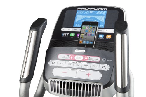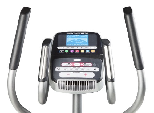 ProForm 14.0 RE Burn more calories with the 14.0 RE Elliptical. Featuring incline up to 30 degrees, this elliptical reduces impact on your joints and adds variety to your training. And, move to your favorite music with the built-in Intermix Acoustics 2.0 sound system. Plug your iPod, or MP3 Player, into the Interplay Music Port to stay motivated to reach your goals! Plus, quickly add intensity to your workout, burn more calories and increase muscle tone with 20 levels of digital resistance. You’ll personalize each workout for faster results! The ProForm 14.0 RE Elliptical ProForm 14.0 RE Console with Quick Incline Controls Features and Specifications: iFit Compatible**: Reach your weight-loss goals fast with iFit® Technology on the 14.0 RE Elliptical. With workouts powered by Google Maps™, training with Jillian Michaels, online fitness tracking and more, you’ll get the body you want in no time! **Requires iFit® wireless adapter. Wireless adapter sold separately. Google and Google Maps are registered trademarks of Google, Inc. 20-22" Adjustable Stride Length: Quickly adjust your stride to find a better fit or change up your workout for more variety. Choose from 20 – 22” to target different muscles and add definition to your lower body. 20lb. Effective Inertia-Enhanced Flywheel: Get a smoother, more comfortable workout with the heavy-duty, inertia-enhanced flywheel. A faster gear ratio and effective weight placement deliver a more natural striding experience. 10-30 Degree Quick Incline Control: Boost your performance with Quick Incline? Controls. Walking at an incline reduces impact on your joints and will help you burn fat calories fast! Plus, walking or jogging at an incline will add variety to your workout. Quick controls adjust your incline with the touch of a button! Upper-Body Workout Arms with Comfortable, Soft Grips: Get a total-body, low-impact workout with upper-body workout arms. Elliptical training engages your entire body, burns more calories and tones more muscle for faster results. 22 Workout Apps: Get the workout you want with 22 built-in workout apps. The simple navigation of the apps makes it quick and easy to pick your workout and get going! 20 Digital Resistance Levels: To burn more calories, increase intensity and improve muscle tone, simply adjust the elliptical’s resistance level. Choose from 20 resistance levels to enhance any workout. 5" Backlit Display: Perfectly clear and easy to read, this backlit display has a large viewing angle so no matter how tall or short you are, you can always keep track of your workout progress. It displays your resistance, time, distance, pulse and calories burned. This console also features RaceTrack Display, which allows you to monitor your progress in a track-style format. Transport Wheels: Moving this elliptical from one place to another is fast and easy with the built-in wheels. Oversized, Cushioned Pedals: These large pedals allow you a number of different foot positions and provide great stability as you exercise. Dual-Grip EKG Heart Rate Monitor: Stay in your target heart rate zone for maximum results! Built-in sensors help you monitor your heart rate throughout your workout. You’ll stay on track for better, faster results. Commercial-Gauge Solid-Steel Construction: Built to last, this elliptical was made with commercial-gauge solid steel and has undergone rigorous testing to deliver heavy-duty, quality construction. Water Bottle Holder: Stay hydrated throughout your workout by keeping your water bottle close. This convenient holder is built-in to the elliptical for easy access. SpaceSaver Design: Quickly fold the Pro-Form 14.0 RE Elliptical up and out of the way with SpaceSaver Design. Intermix Acoustics 2.0 Sound System: Plug your iPod into the Intermix Accoustics 2.0 Sound System and enjoy incredible sound through 2” speakers. 300 lb. Weight Capacity: This heavy-duty elliptical is built to withstand heavy use; it accommodates up to 300 lbs. Warranty: The ProForm 14.0 RE Elliptical is protected by a Lifetime Frame Warranty, 2-Year Parts Warranty and 1-Year Labor Warranty. The 14.0 RE with SpaceSaver Design