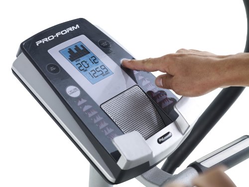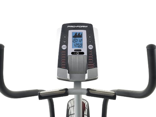 - Inertia-Enhanced Flywheel; Blue-Tinted LCD with Workout Matrix, Dual-Grip EKG Heart Rate Monitor, Transport Wheels,