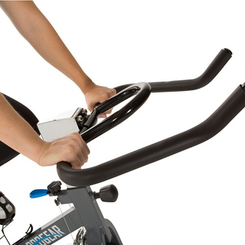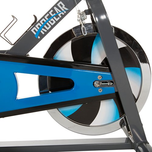 The ProGear 120Xi Indoor Training cycle or cycling bike is a great way to get a cardiovascular fitness workout just like you would on a regular road bike.…..If you want a more challenging workout than a typical exercise bike, then the ProGear 120Xi is the cycling bike for you. Our unique multi grip handle bar design, will be super comfortable when increasing your pedaling pace to get the maximum out of your workout. The extra wide bike frame provides stability and the look of more expensive training cycles. Solid 3 piece crank system with chain drive. Double direction enabled pedaling. Top down emergency brake. Transport wheels provide for easy relocation. Cast iron flywheel with a chrome rim weighs 35 lbs and is smooth and consistent when pedaling. 4 way seat adjustment. The cushioned ergonomic seat will adjust forward/backward and up/down. Water bottle holder included. Recommended height range is 5’1” to 6’5”. Soft foam covered“ Multi- Grip” handle bars will adjust upward and downward locking into 3 different positions. Chain driven to simulate road bike exercise. Aluminum alloy pedal construction with secure Toe Cages included for that extra forward leg thrust. Both sides of the pedal can be used. Floor Stabilizers will level your bike on most surfaces. Some assembly required. Superior 2 sided high friction brake pads provide consistent tension control. WARRANTY: 2 year limited. ORIGIN: China