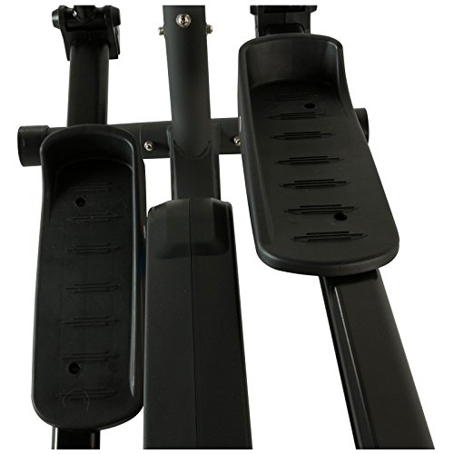 1317 Features: -Smooth elliptical stride length provides comfortable and full range work out without any strain on the knees or ankles. -Special engineered sleek and slim design provides the most natural stride motion. -Strong and durable 3 piece cranking system for high end performance and continuous momentum. -Double transmission operates with consistent 2 flywheel and 2 belt design system. -Double transmission utilizes space saver compact design that reduces the overall length and size of the elliptical trainer. -Smoother than most single flywheel elliptical machines. Finish: -Black, brown, blue. Material: -Metal/Plastic. User Weight Capacity: -270 Pounds. Dimensions: Overall Height - Top to Bottom: -64". Overall Width - Side to Side: -25". Overall Depth - Front to Back: -55". Width Between Pedals: -6". Overall Product Weight: -84 lbs.